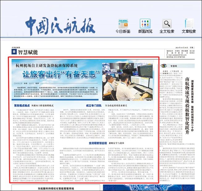 10月30日,中國民航報刊登《杭州機場自主研發備降航班保障系統,讓旅客出行“有備無患”》。
