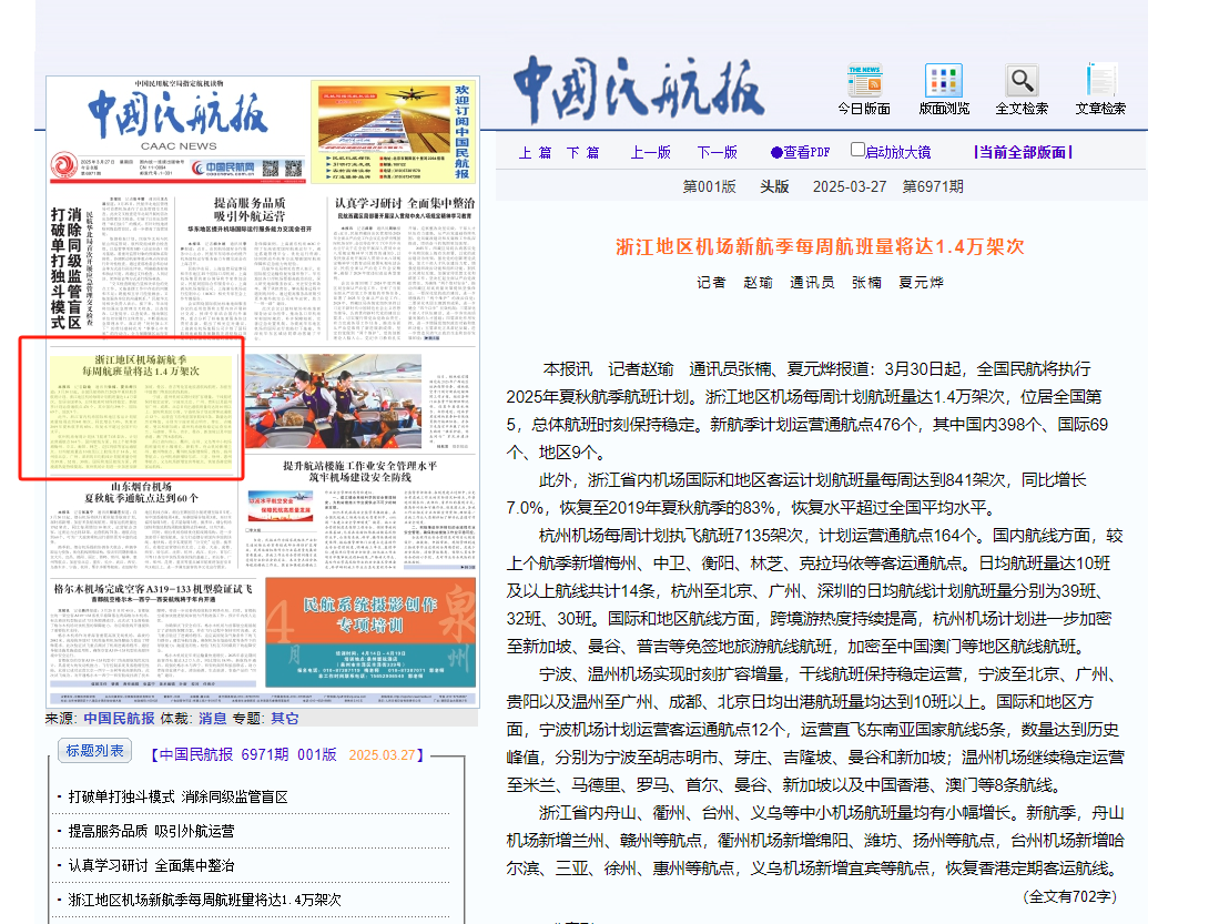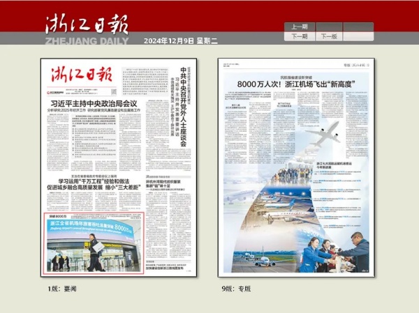 浙江日報:民航強省建設新突破8000萬人次!浙江機場飛出“新高度”