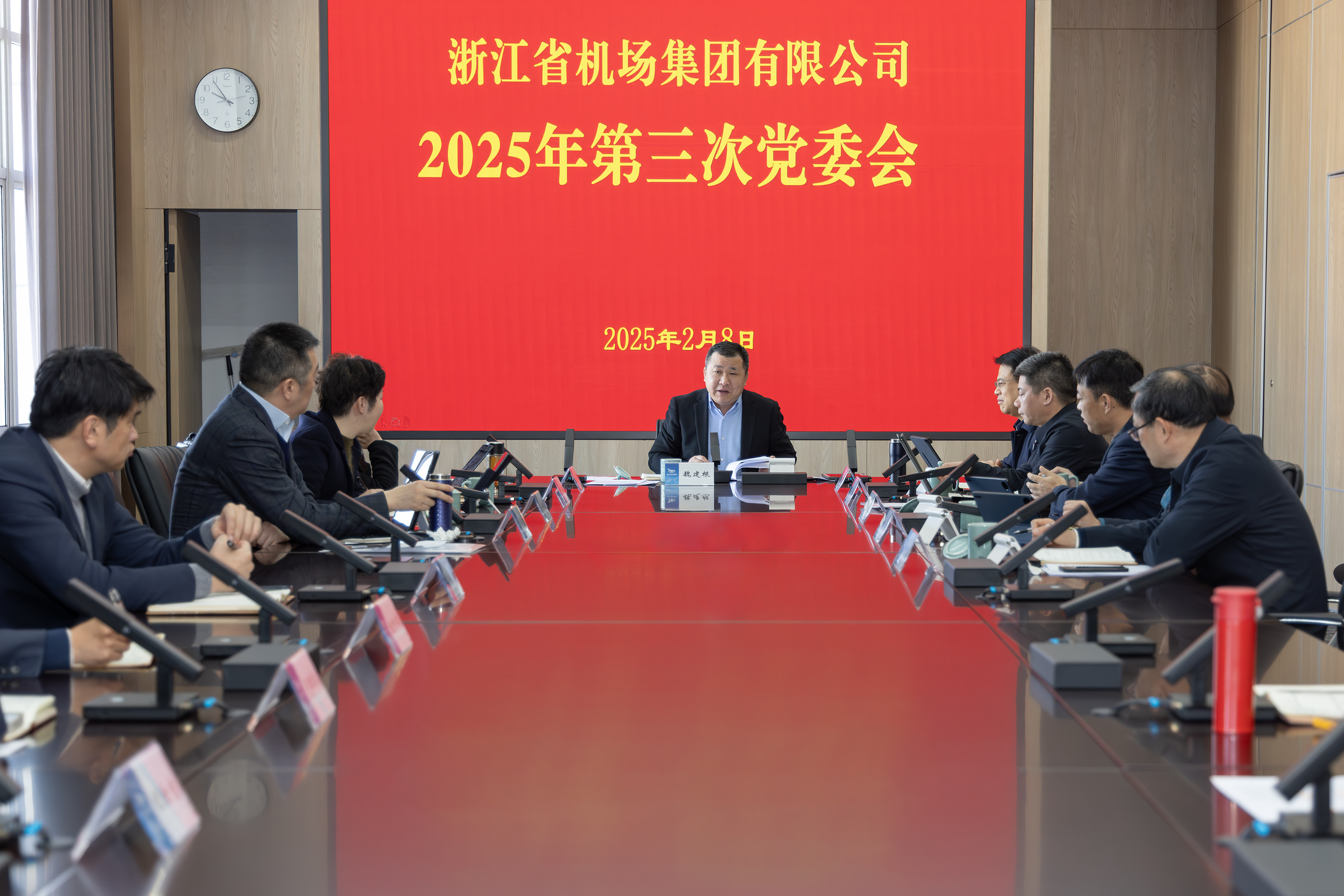 2月8日上午,省機場集團召開黨委會傳達學習新春第一會精神,研究部署集團貫徹落實舉措。集團黨委書記、董事長魏建根主持會議并講話。