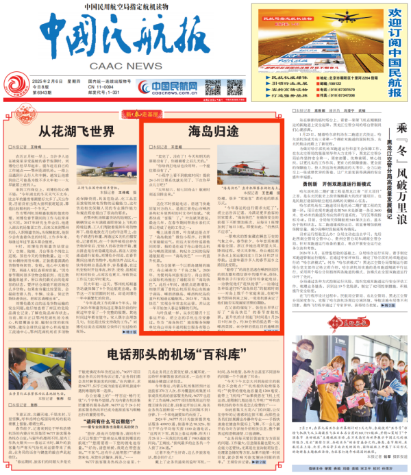 2月6日,中國民航報頭版刊登《海島歸途》:作爲全國第一個以群島建制的城市,舟山被稱爲“千島之城”。爲便捷島間出行,舟山普陀山機場推出了“海島快巴”通航項目,并在春節期間通過直升機送島民回家。